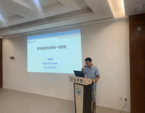 戴黎聪副教授作题为《撰写基金申请书的一些经验》的报告。戴教授强调,选题要具有前沿性和创新性,紧密结合学科发展趋势和国家重大需求。在研究内容方面,应明确核心问题,突出重点和难点,避免过于宽泛或模糊。他结合个人经验,详细介绍了基金申请书每一部分撰写的注意事项。