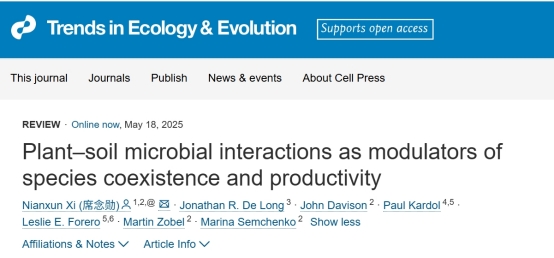 近日,william威廉中文官网生态学院席念勋以第一作者兼独立通讯作者在Trends in Ecology & Evolution发表了题为“Plant-soil microbial interactions as modulators of species coexistence and productivity”的综述文章,从理论上阐明土壤微生物调节植物物种共存及多样性影响生产力的理论基础,然后据此解释不同微生物类群(专化微生物,泛化微生物)如何调节物种间的生态位和适合度差异,进而通过互补效应和选择效应影响生产力,并据此推断两类机制之间的关联。研究认为不同的土壤微生物类群对植物物种共存和多样性-生产力关系可能有截然不同的影响,具体取决于植物-土壤微生物互作的类型和专化性。此外,与植物产生对抗性关系或者互利性关系的其他类群(比如叶际微生物、传粉者、食草昆虫等)也可能通过类似的机制调节植物物种共存和生态系统功能。塔尔图大学的Marina Semchenko教授、Martin Zobel教授以及瑞典农业大学Paul Kardol教授等为本文的共同作者。