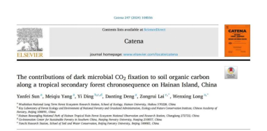 论文以《The contributions of dark microbial CO2 fixation to soil organic carbon along a tropical secondary forest chronosequence on Hainan Island, China》为题,在发表在Catena期刊。孙延菲副教授为第一作者,龙文兴教授为共同通讯作者(https://doi.org/10.1016/j.catena.2024.108556)。