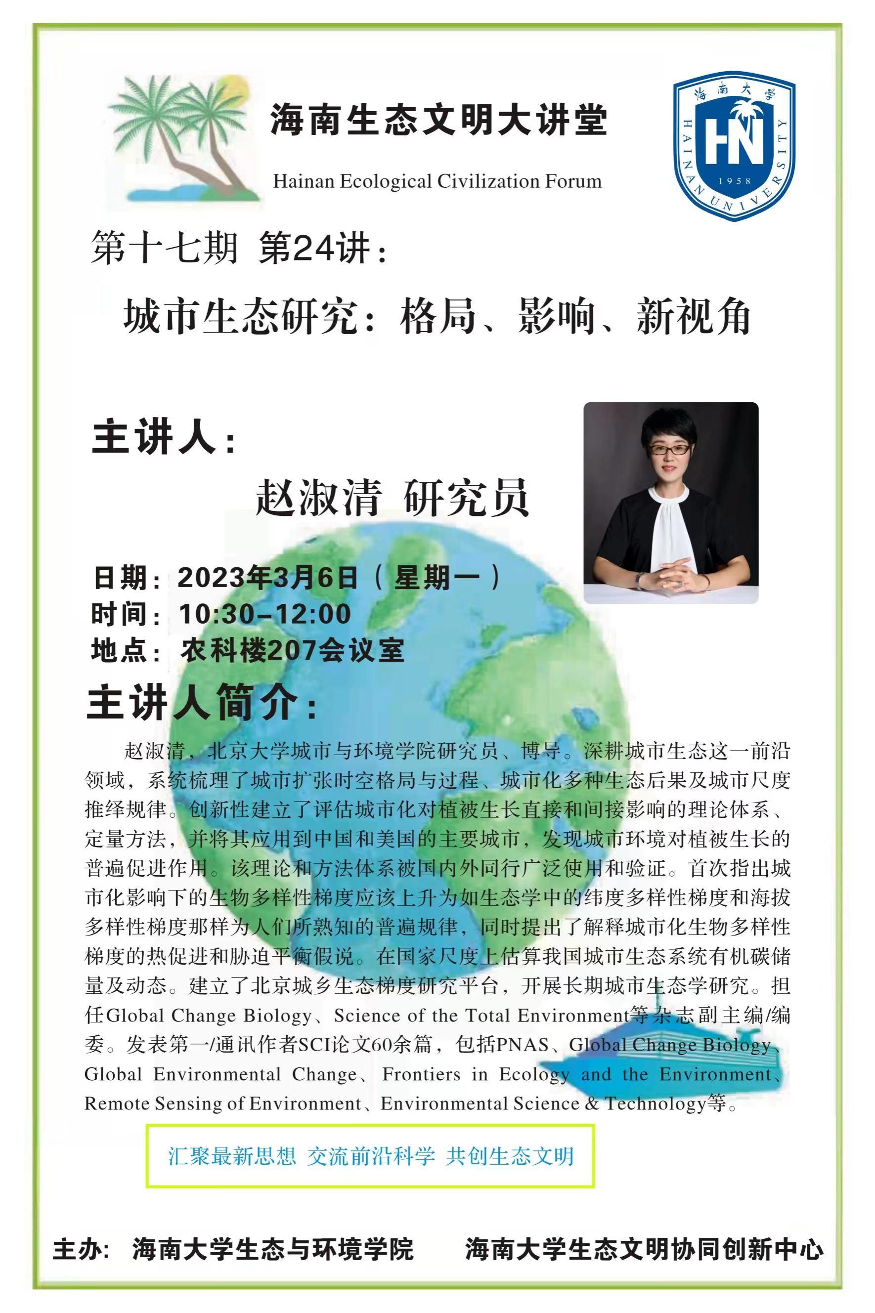 第24讲 赵淑清研究员做客海南生态文明大讲堂