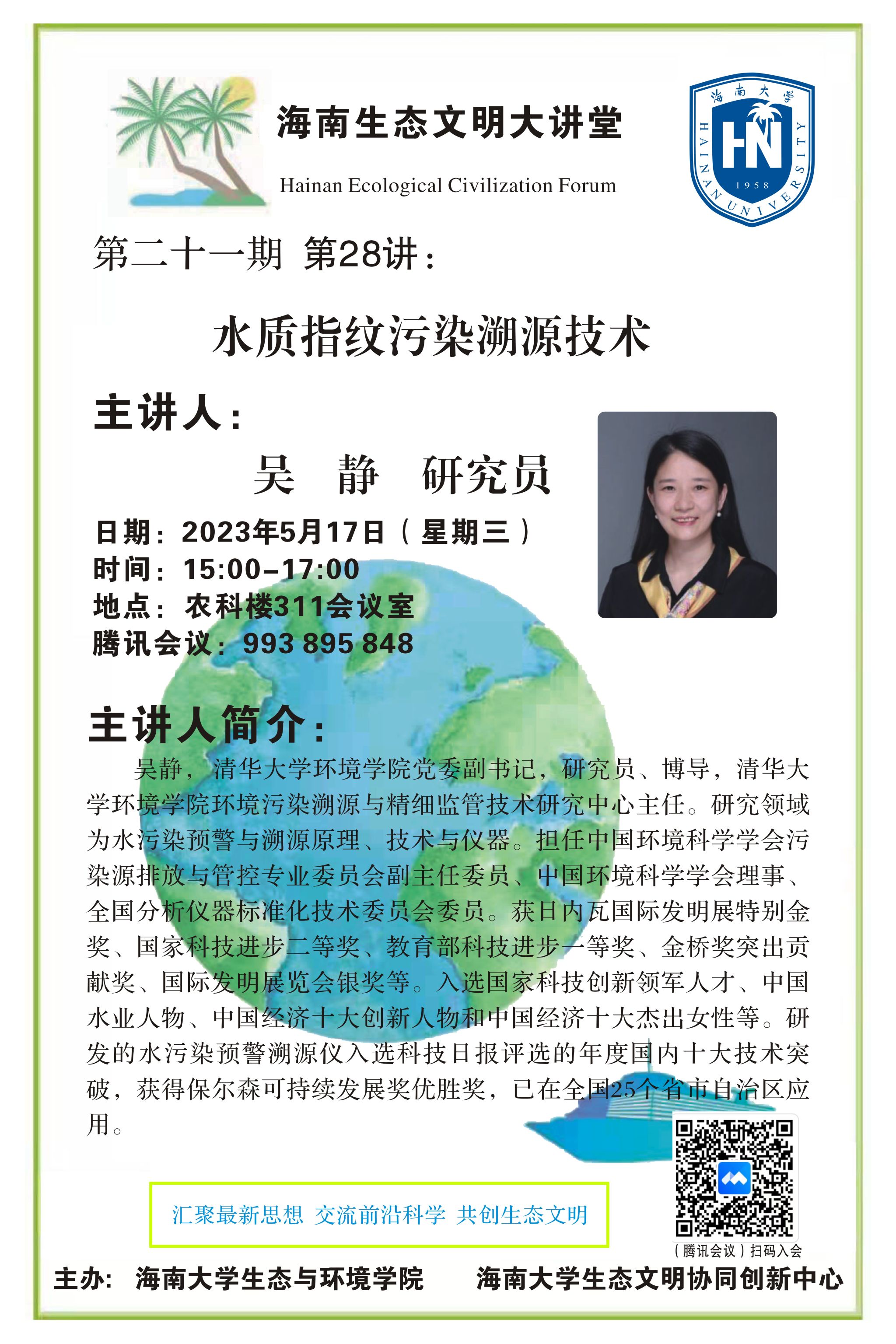 第28讲 吴静研究员做客海南生态文明大讲堂